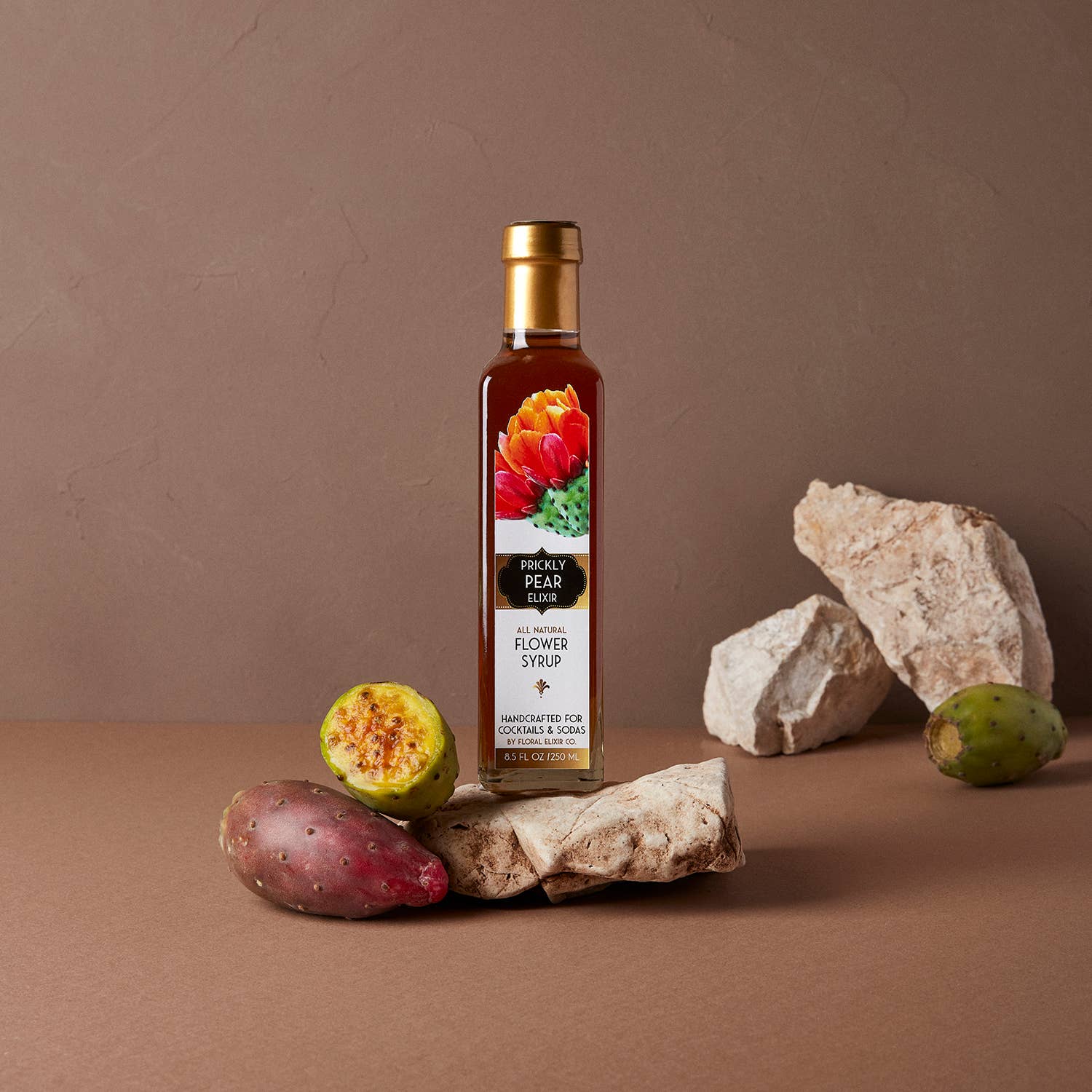 For centuries people have enjoyed the flavor of the beautiful Prickly Pear Cactus of which the flowers, the fruit and the green pads can be eaten. Add our Prickly Pear Elixir to your favorite spirits for a floral twist on cocktails. Champagne cocktails and white win spritzers. Sodas, teas and lemonades for easy non-alcoholic, mocktail drinks. Each glass bottle includes illustrated recipes. Serving size: 1/2 ounce Original size: 17 servings total Small size: 4 servings total All Natural. 100% Gluten Free.